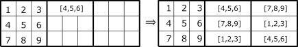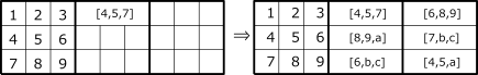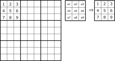 Further, the third line of the block B2 becomes {1,2,3}, and the second line {7,8,9} of the block B2.