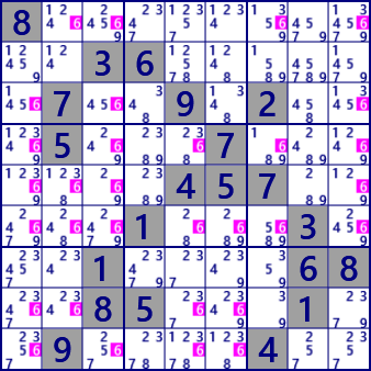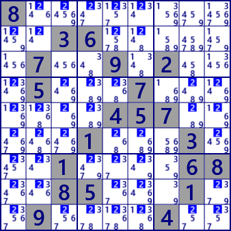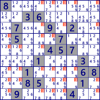 number of candidate digits< 2 3 4 5 6 7 8 9 number of cells 1 11 25 20 2 1 0 0 - Distribution of candidate digits
