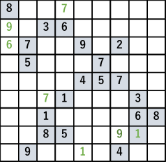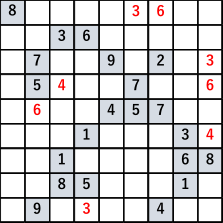 (The numbers in [] are the number of times used.) Also, none of the Puzzle in which the green numbers in the following figure were added one by one could be solved using GNPX. Including these, 52/60 (86.7%) of the Puzzle cannot be solved.