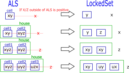 In false ALS, n candidate number are in n cells and ALS becomes Locked Set.
