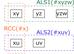 In the following figure there are two ALSs (blue and green dashed boxes) and when they satisfy the condition