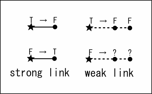 Alternately connecting Strong Link and Weak Link is called "Chain". Weak link in Chain can also be Strong Link. If the first cell in the chain is "false", then all the cells that make up Chain are true or false. In the figure below, check how the truth is transmitted when the ★cell is false.