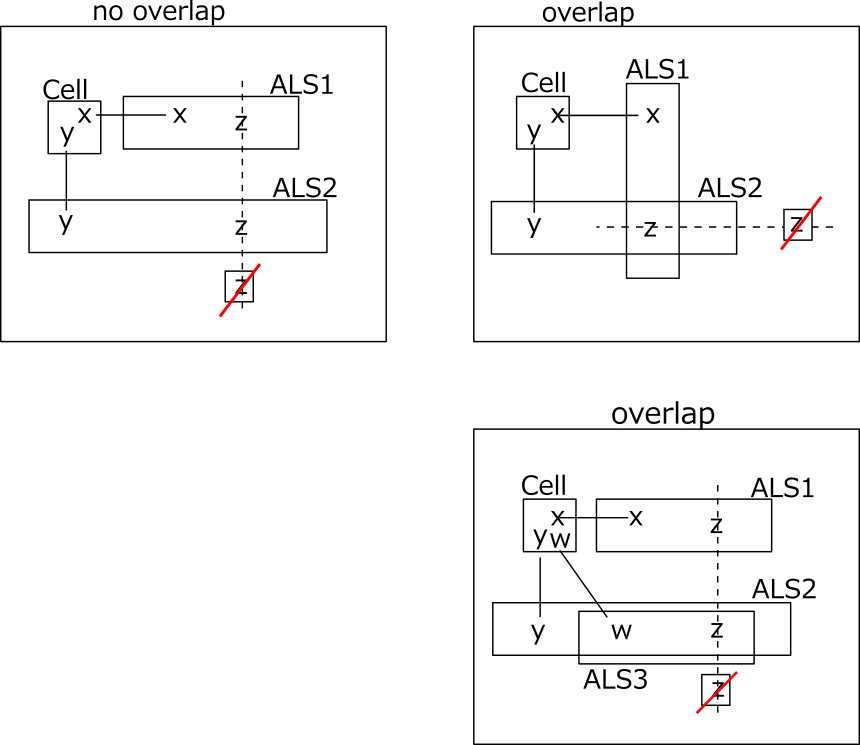 ALS has no overlap (left figure) and overlap allowance (right figure).