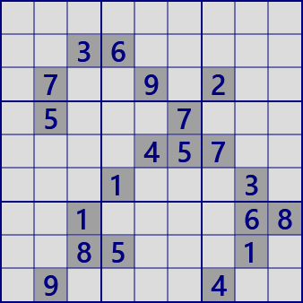 ...........36......7..9.2...5...7.......457.....1...3...1....68..85...1..9....4.. solutions:292