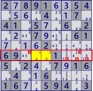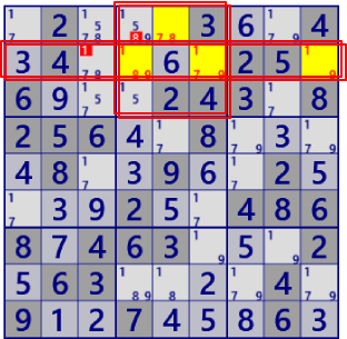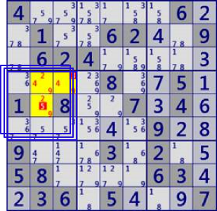 通常の数独アルゴリズムで解く場面にGeneral Logicを適用した例を示します。