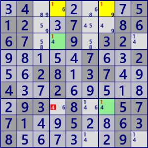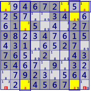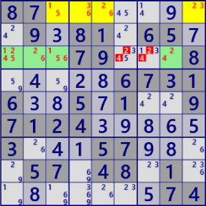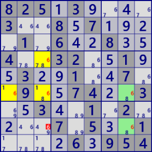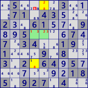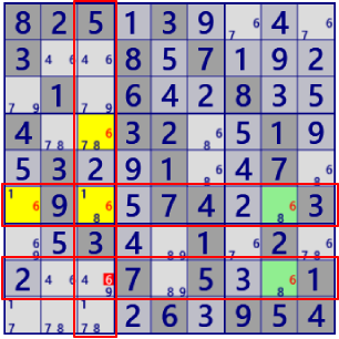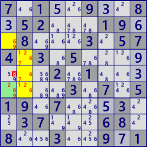 - General Logicは、Lockedを壊す位置のセル・数字を”真ではない”と除外する論理です。 候補が唯一となったセル・数字を確定することはしません。General Logicの他に、確定するコード(Single)が必要です。