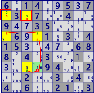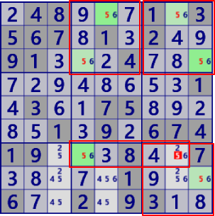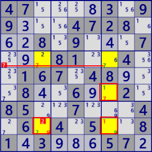 下段は、ALS-XZ(SinglyLinked)(右下)で同じセル・数字を除外できます。しかし、使われている手法は全く異なります。