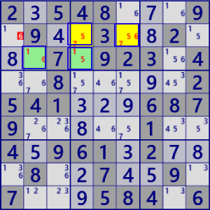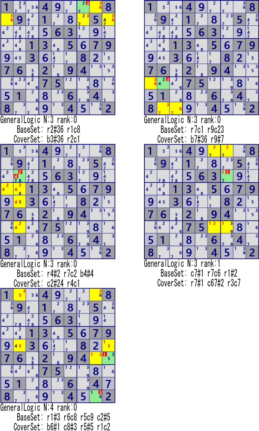 (左図例はBase/CoverSetによる解が重なっている。) rank1 r1c7#5 is not true |