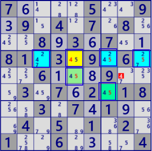BaseSet: r4c5 r5c4 r5c9 r7c9 |